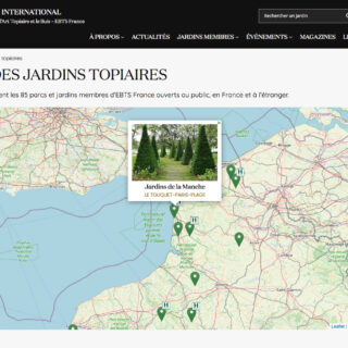 Développement/intégration d’une carte interactive OpenStreetMap pour le site internet buis-et-topiaires.org Localisation de tous les jardins membres d’EBTS France (Association Française pour l’Art Topiaire et le Buis)